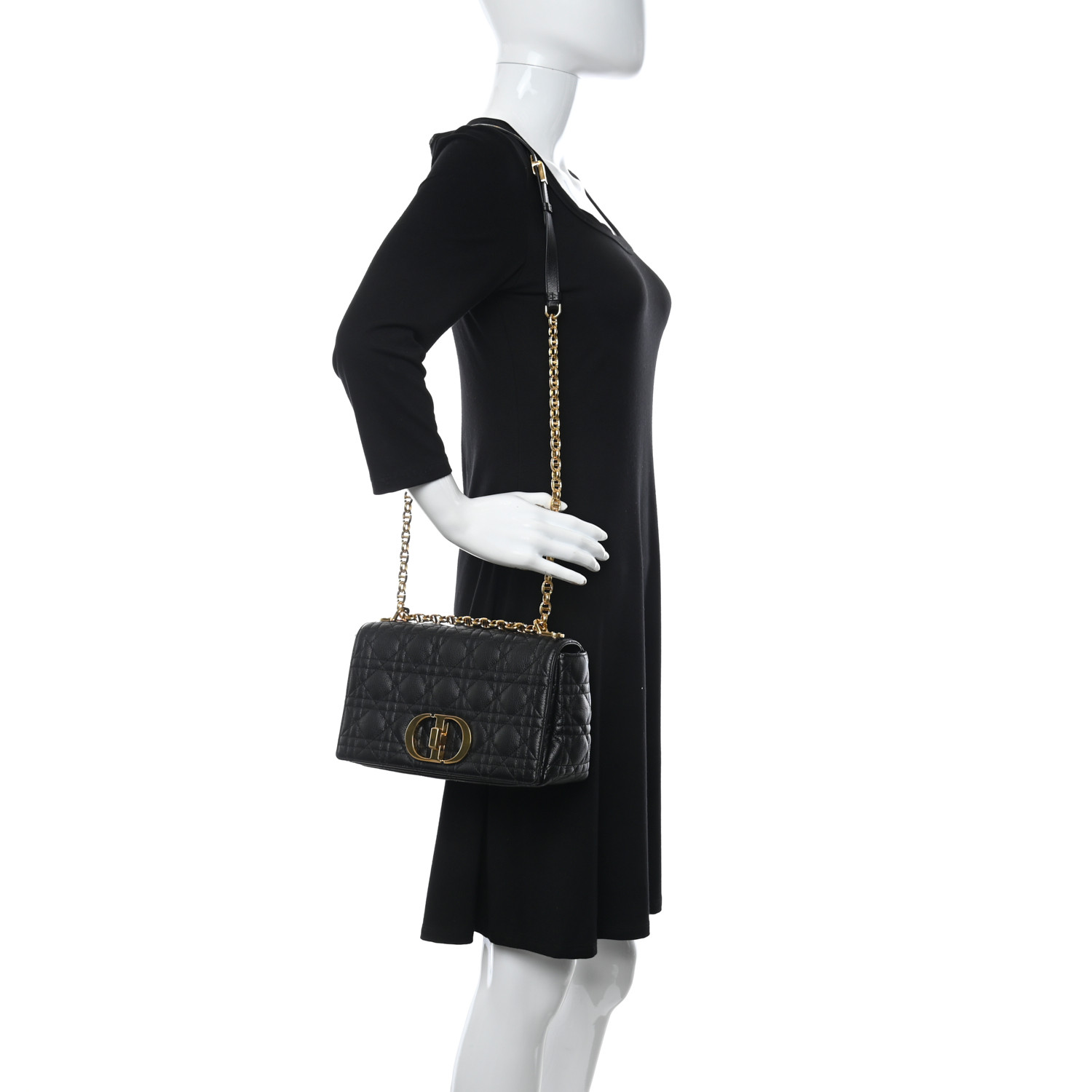 • CHRISTIAN Calfskin Cannage Medium Caro Bag Black