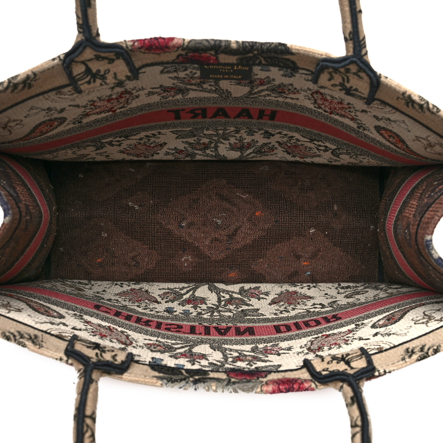CHRISTIAN Canvas Embroidered Large Broderie Flowers Book Tote Multicolor