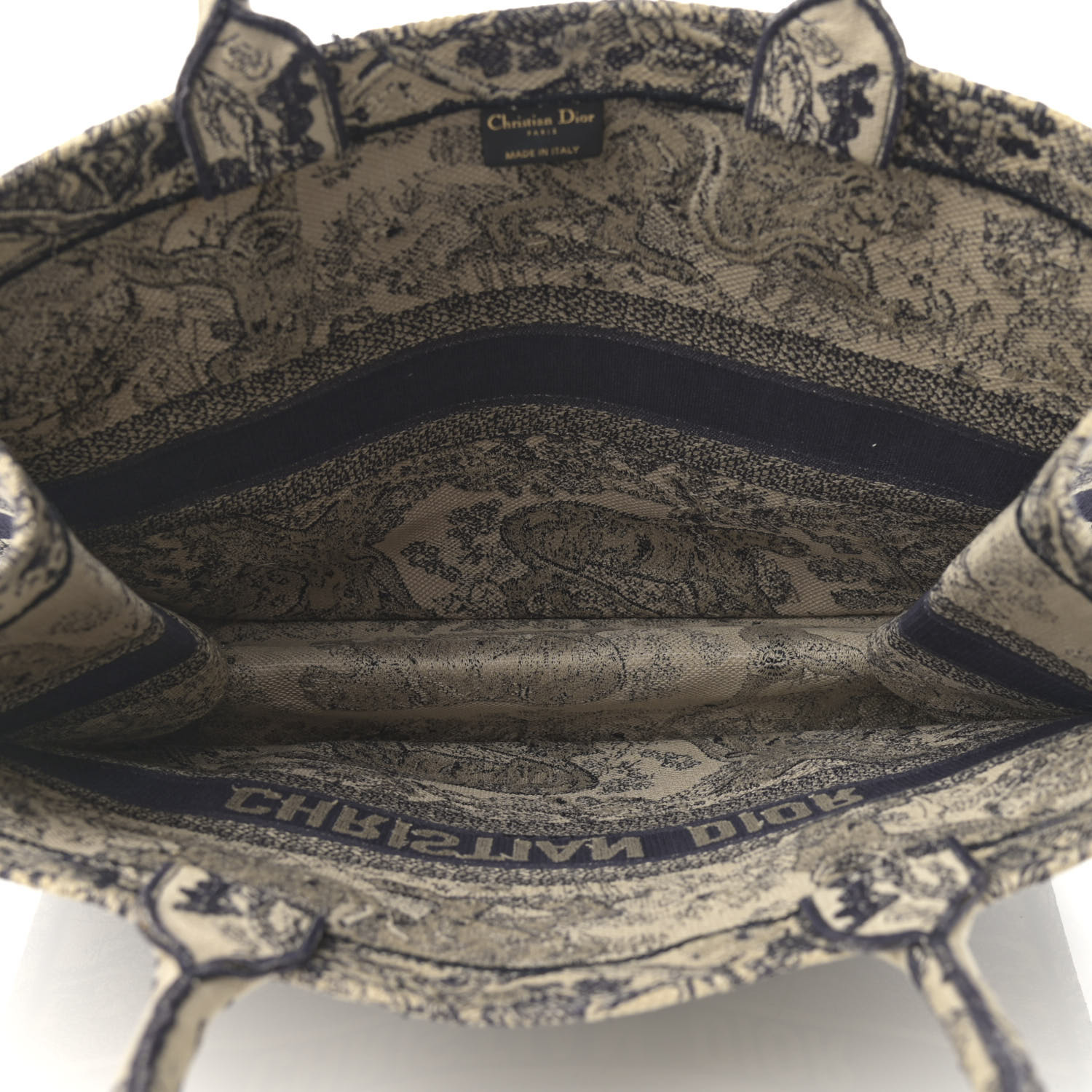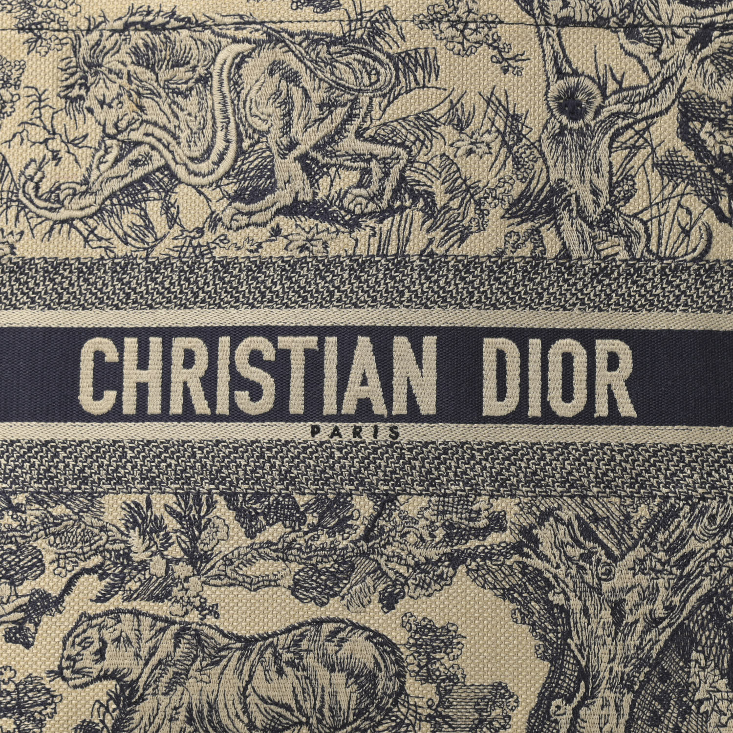 CHRISTIAN Canvas Embroidered Large iviera Toile De Jouy Book Tote Blue
