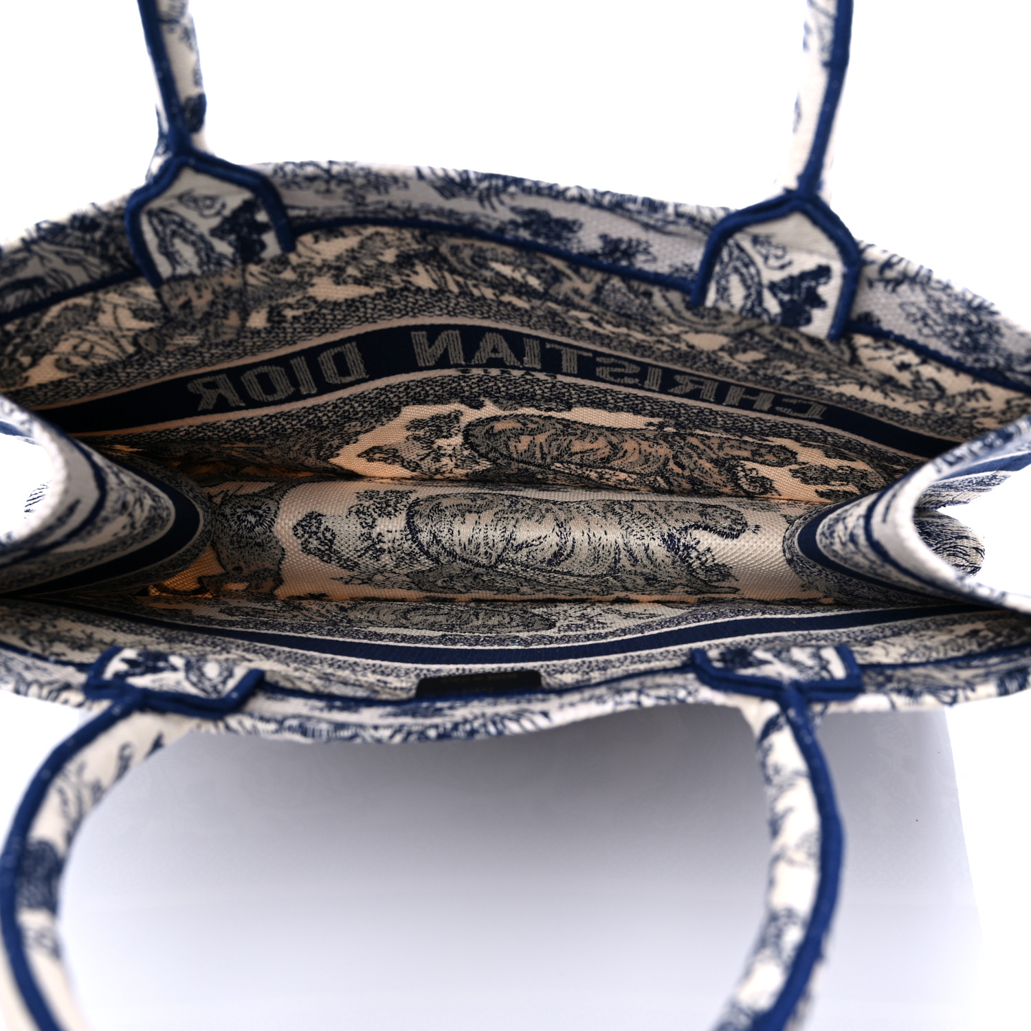 • CHRISTIAN Canvas Embroidered Medium iviera Toile De Jouy Book Tote Blue