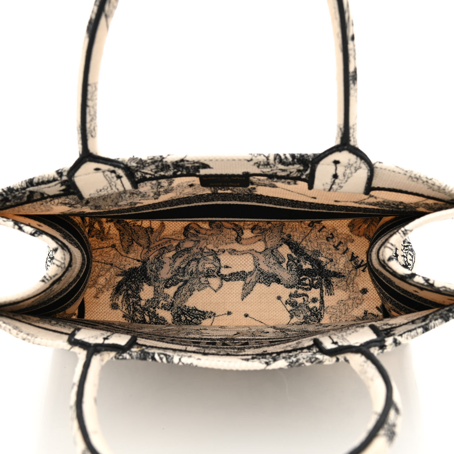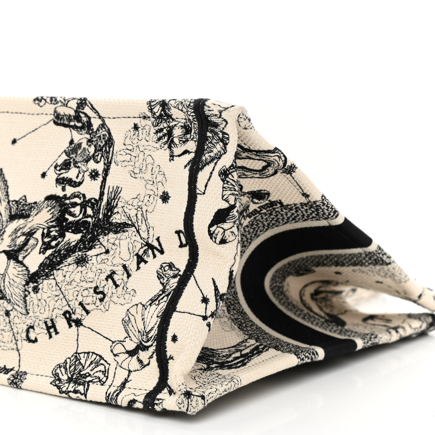 • CHRISTIAN Canvas Embroidered Medium Zodiac Toile De Jouy Book Tote Latte