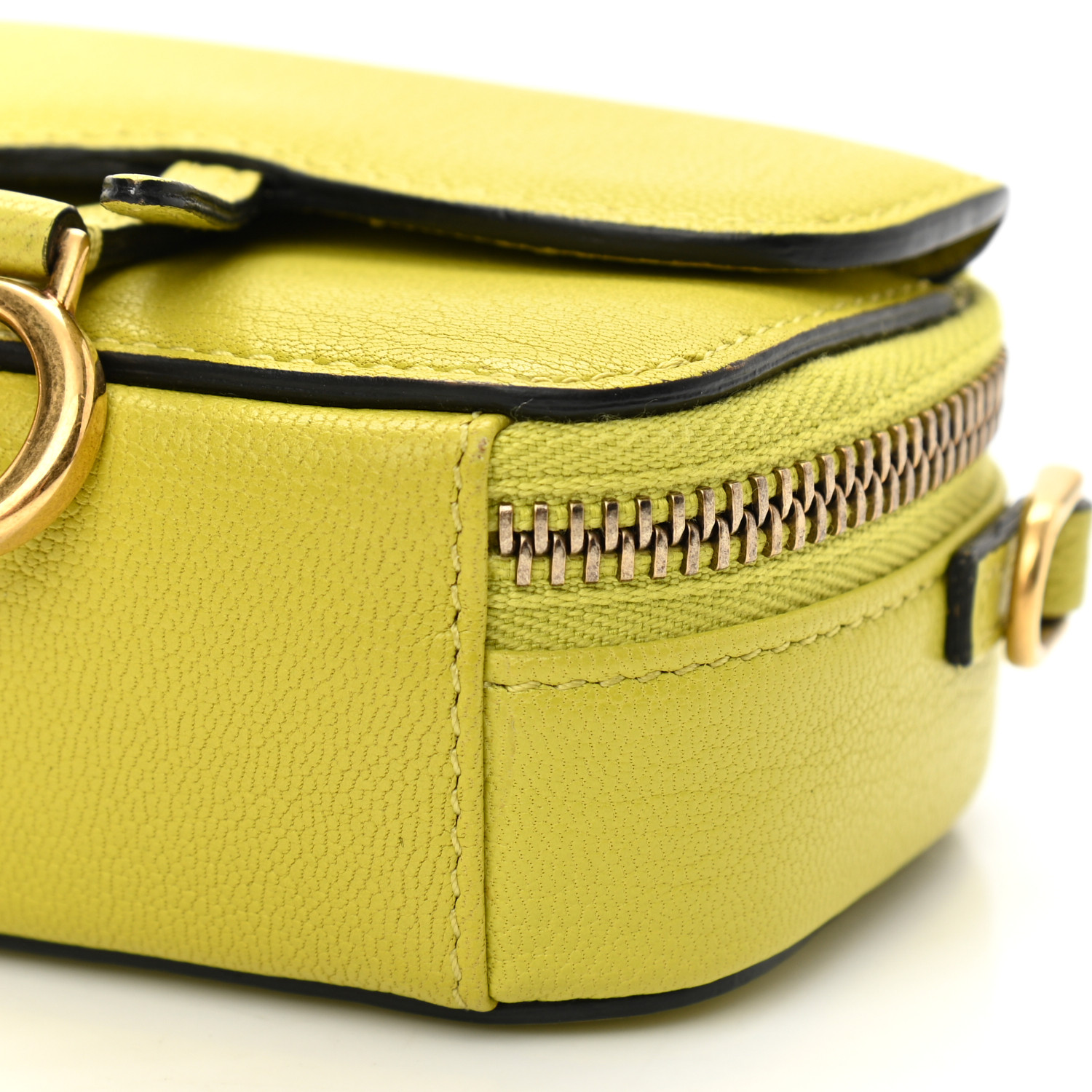 CHRISTIAN Goatskin Mini Saddle Shoulder Strap Pouch Lime