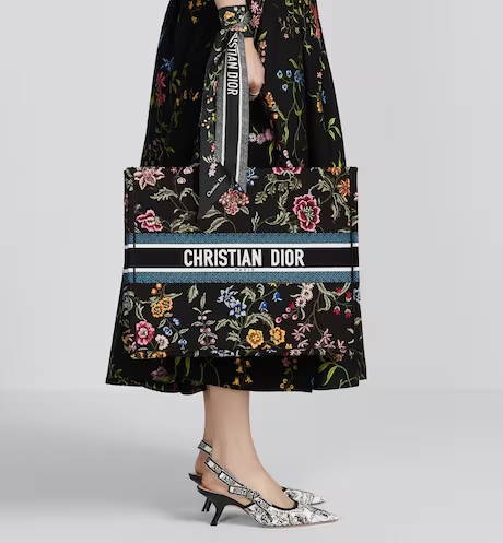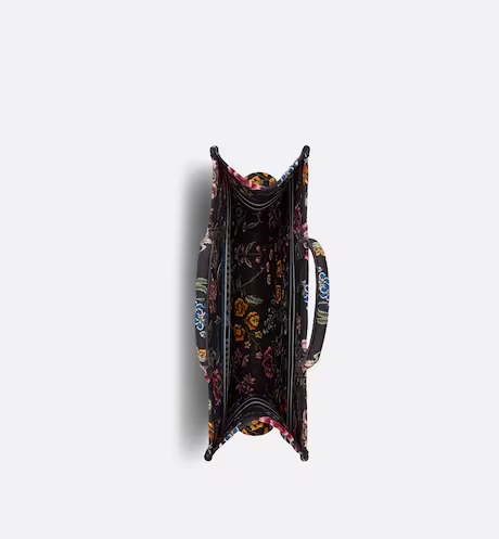 MEDIUM BOOK TOTE Black Multicolor Petites Fleurs Embroidery (36 x 27.5 x 16.5 cm)