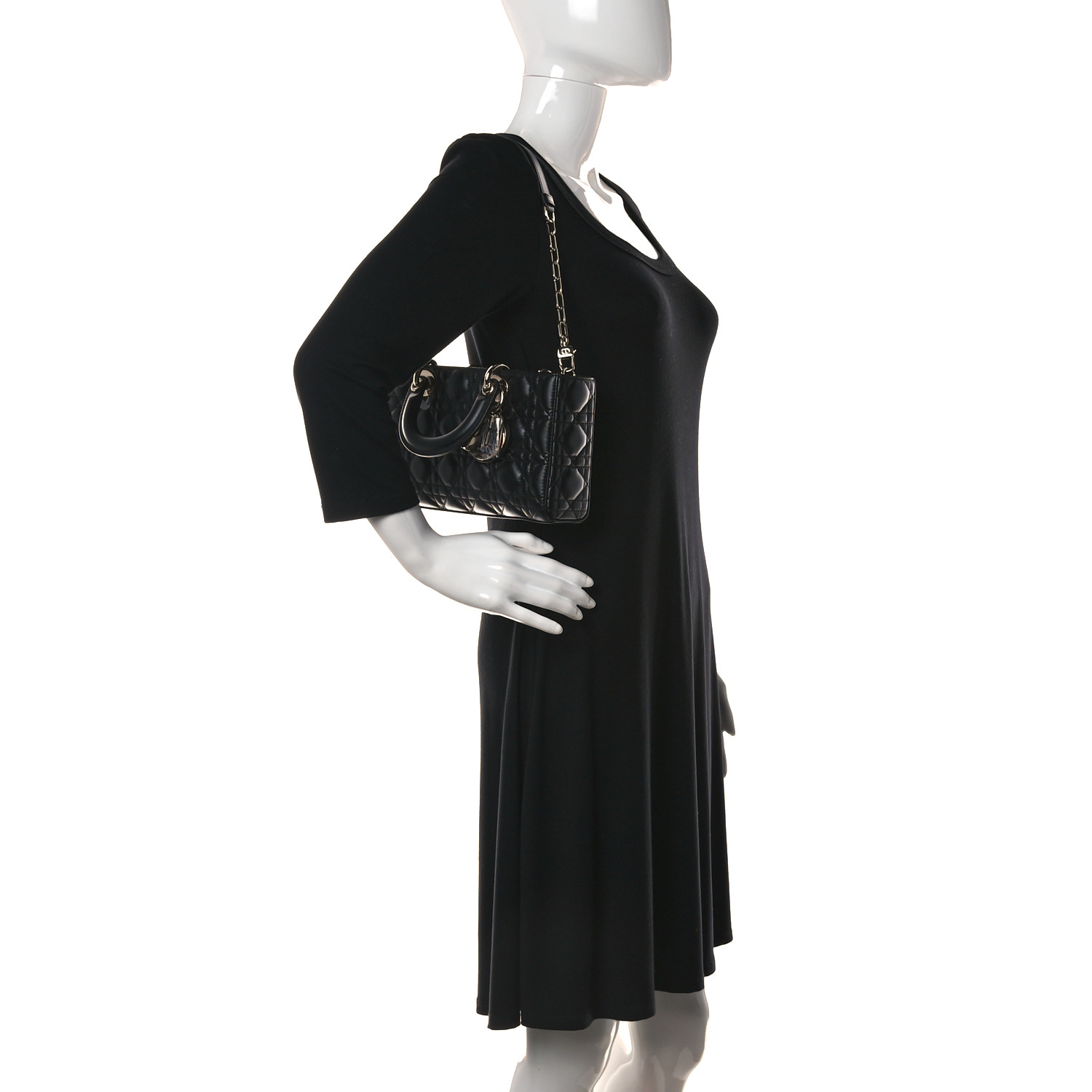 CHRISTIAN Lambskin Cannage Medium Lady D-Joy Black