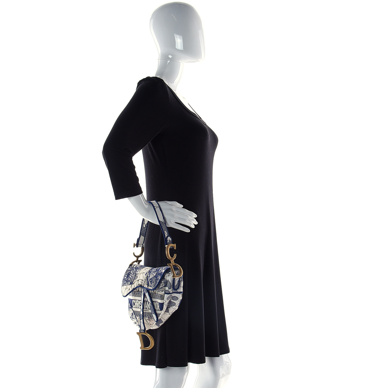 CHRISTIAN Canvas Embroidered Around the World Saddle Bag Blue